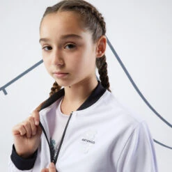 A zip-up jacket that is lightweight, breathable and stretchy.New elegant, technical style to protect yourself from the cold when doing sport!A stylish, technical jacket, so you can hit the courts with class and elegance! Available in sizes 10/11 – 12/13 – 14/15 only.