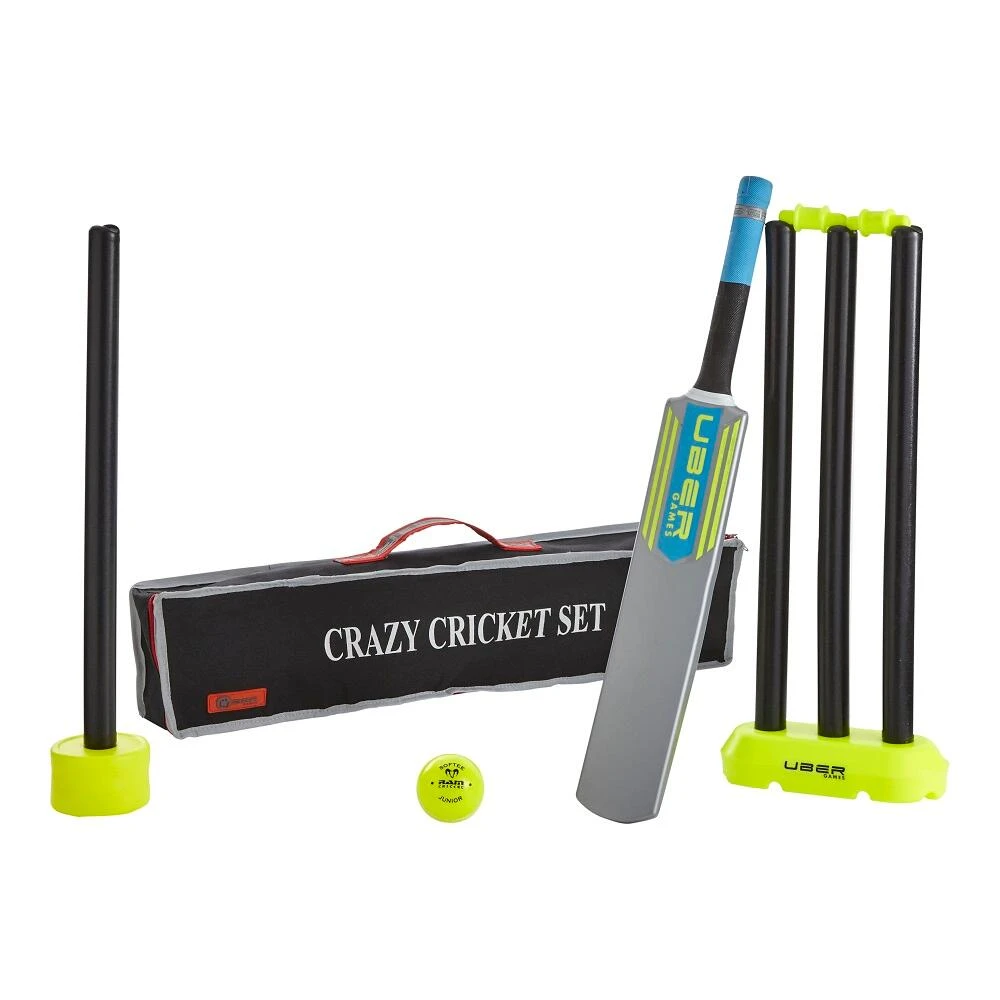 Crazy cricket bats and stumps are manufactured from high-quality moulded plastic, while a nylon storage bag ensures ease of transportation.