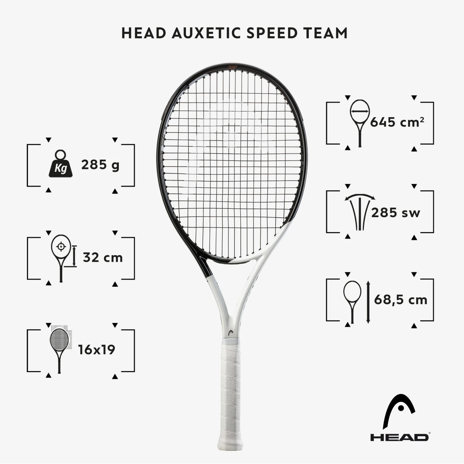 This racket was designed for advanced tennis players looking for a powerful, manoeuvrable racket.The Head Auxetic Speed Team is the 285 g model from the Head Speed range endorsed by Novak Djokovic. This racket gives you a great balance between power and handling, without sacrificing control